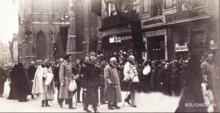 In the photo we attach to this text you can see the Austrian Emperor Carlo and how in the company of his completely covered wives, empresses Zita and son walk Vienna. The picture was created in 1916. We are very interested in how the Minister Kurz would interpret this photograph?